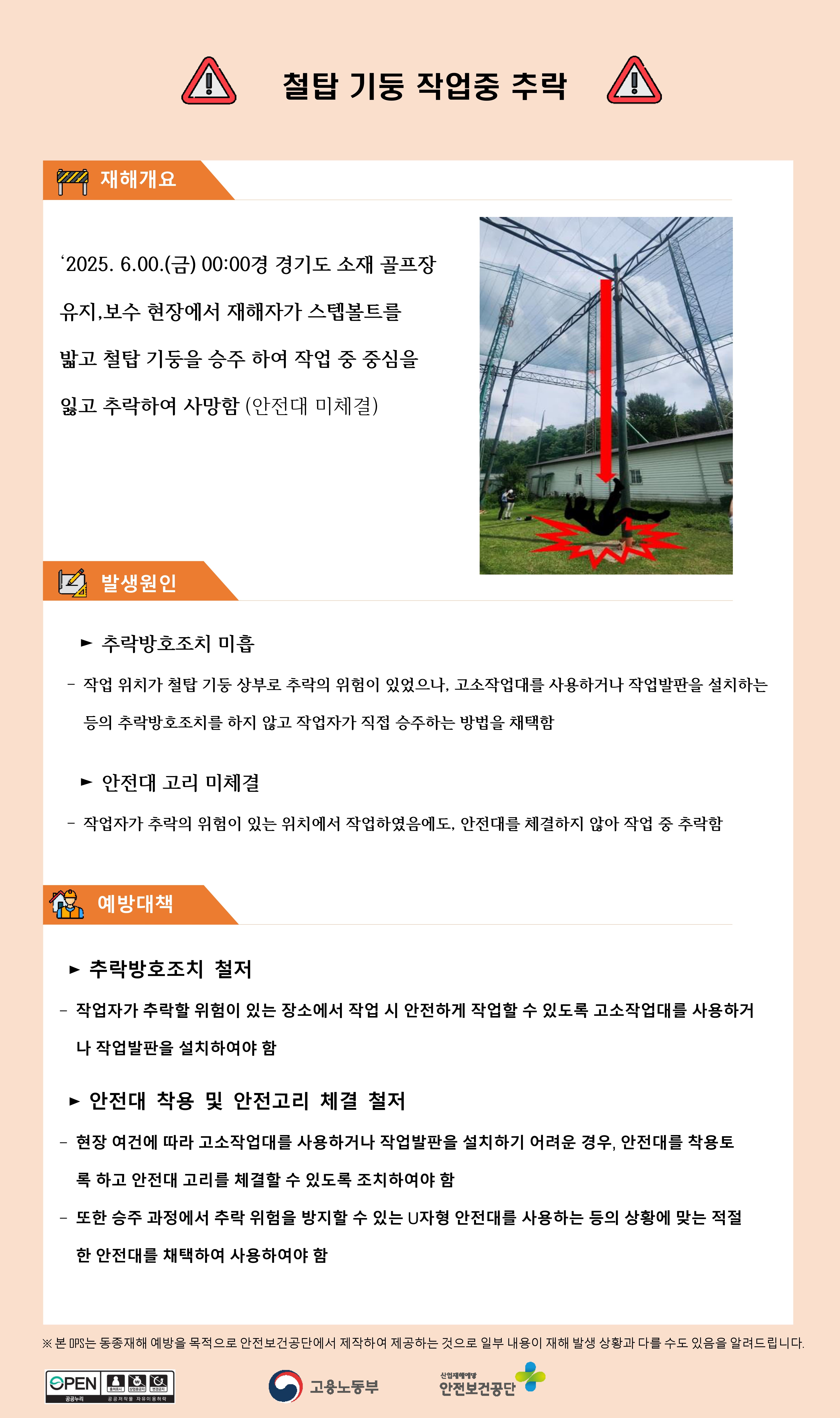 건설업 재해사례 - 철탑 기둥 작업 중 추락