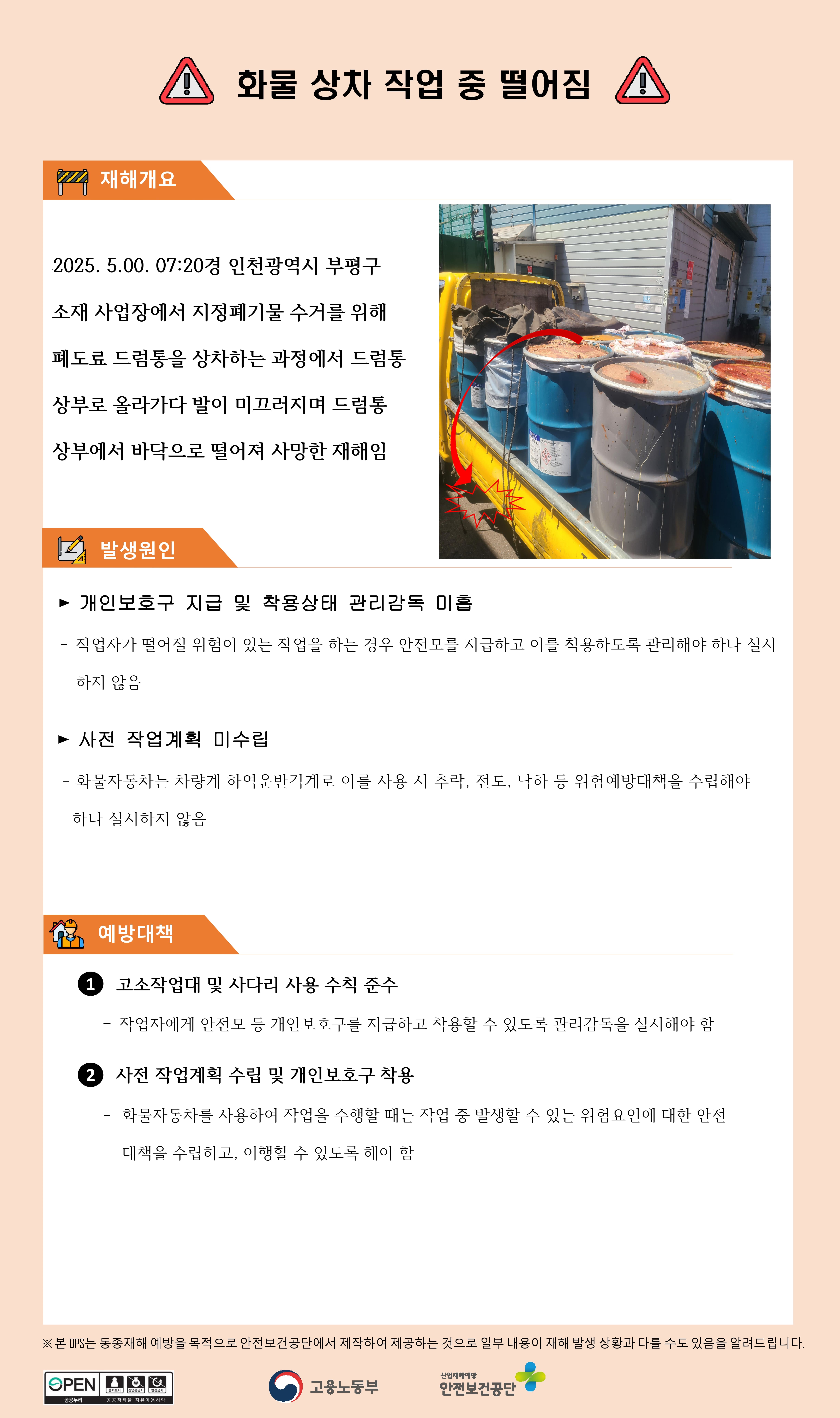 제조업 재해사례 - 화물 상차 작업 중 떨어짐