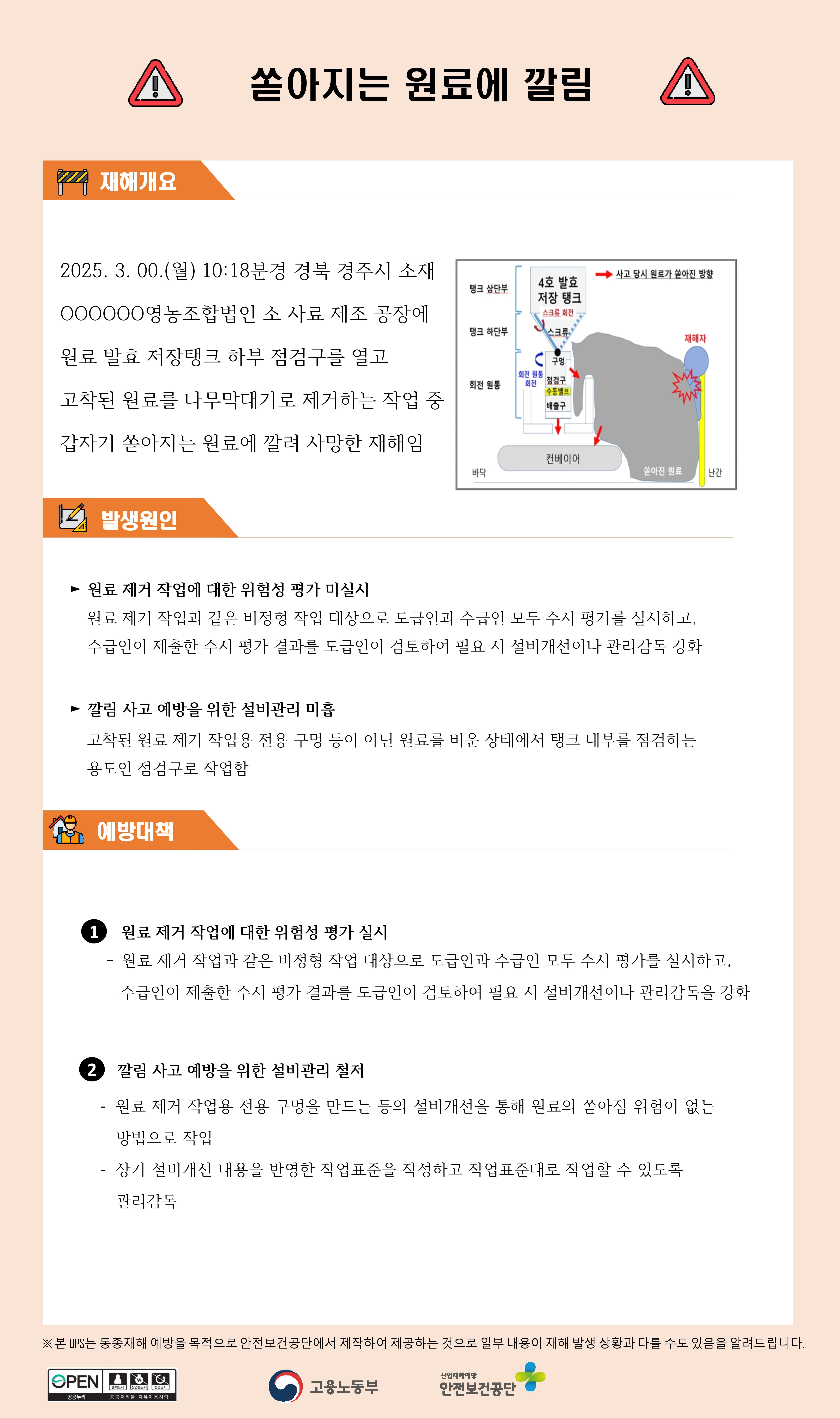 제조업 재해사례 - 쏟아지는 원료에 깔림
