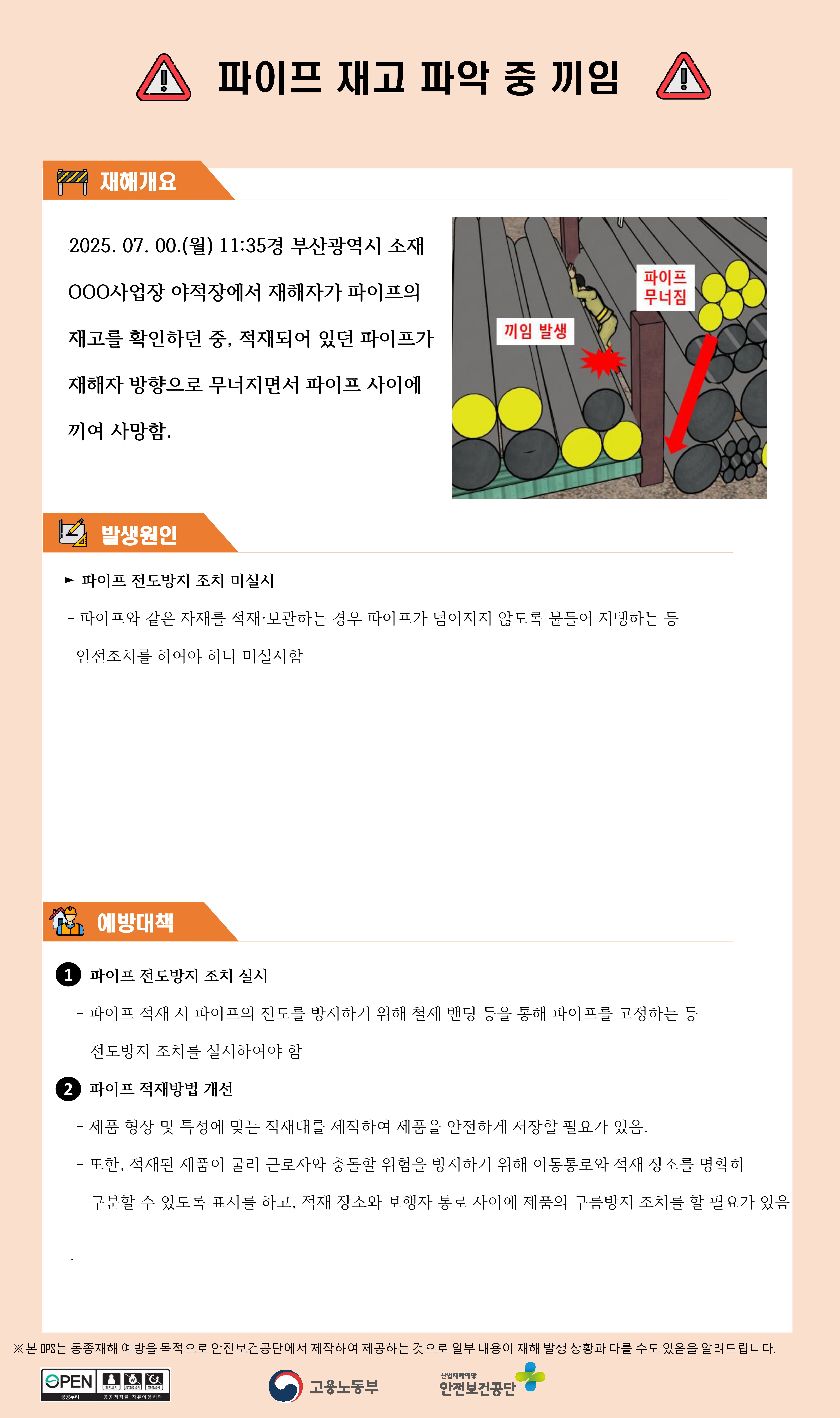 제조업 재해사례 - 파이프 재고 파악 중 끼임