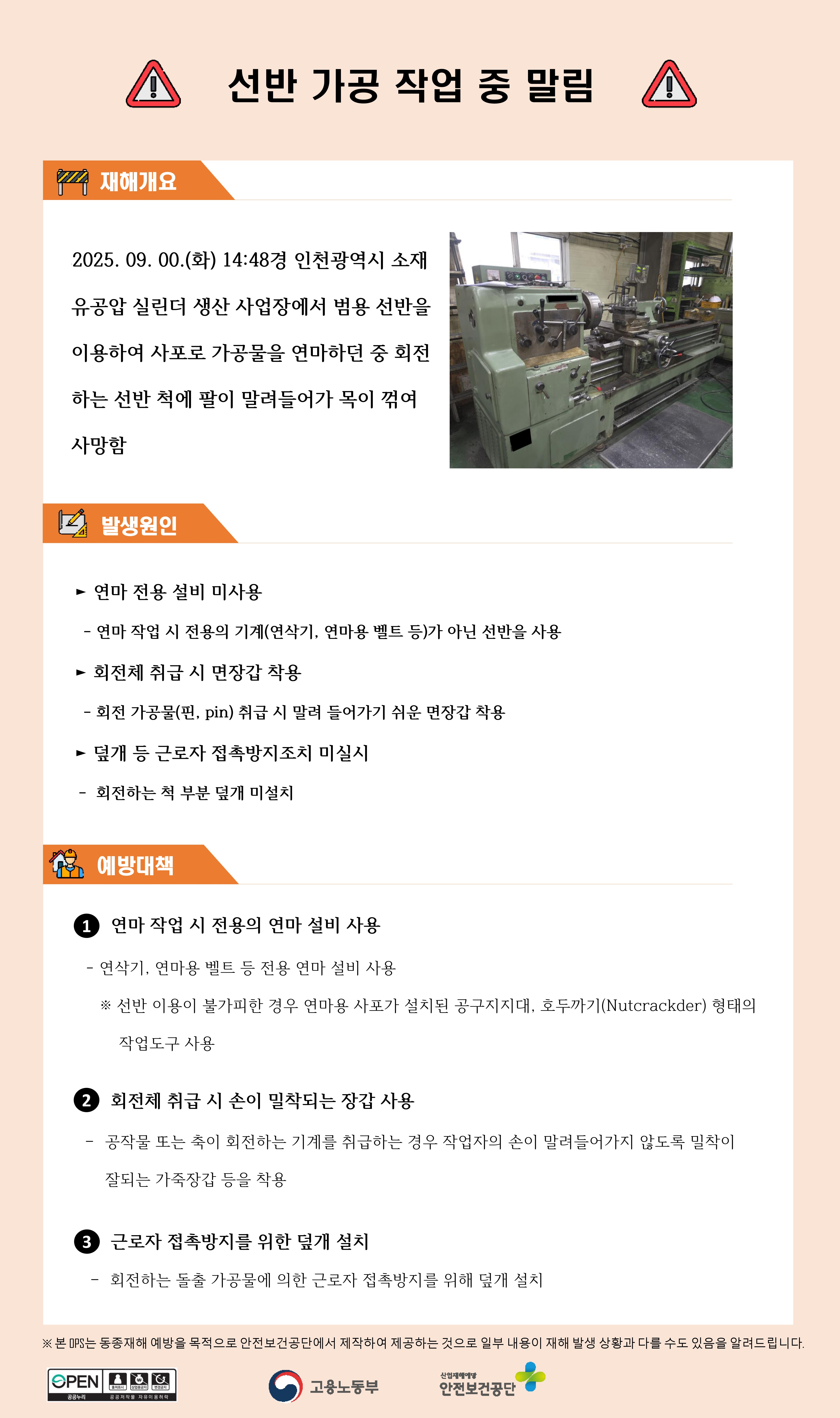 제조업 재해사례 - 선반 가공 작업 중 말림