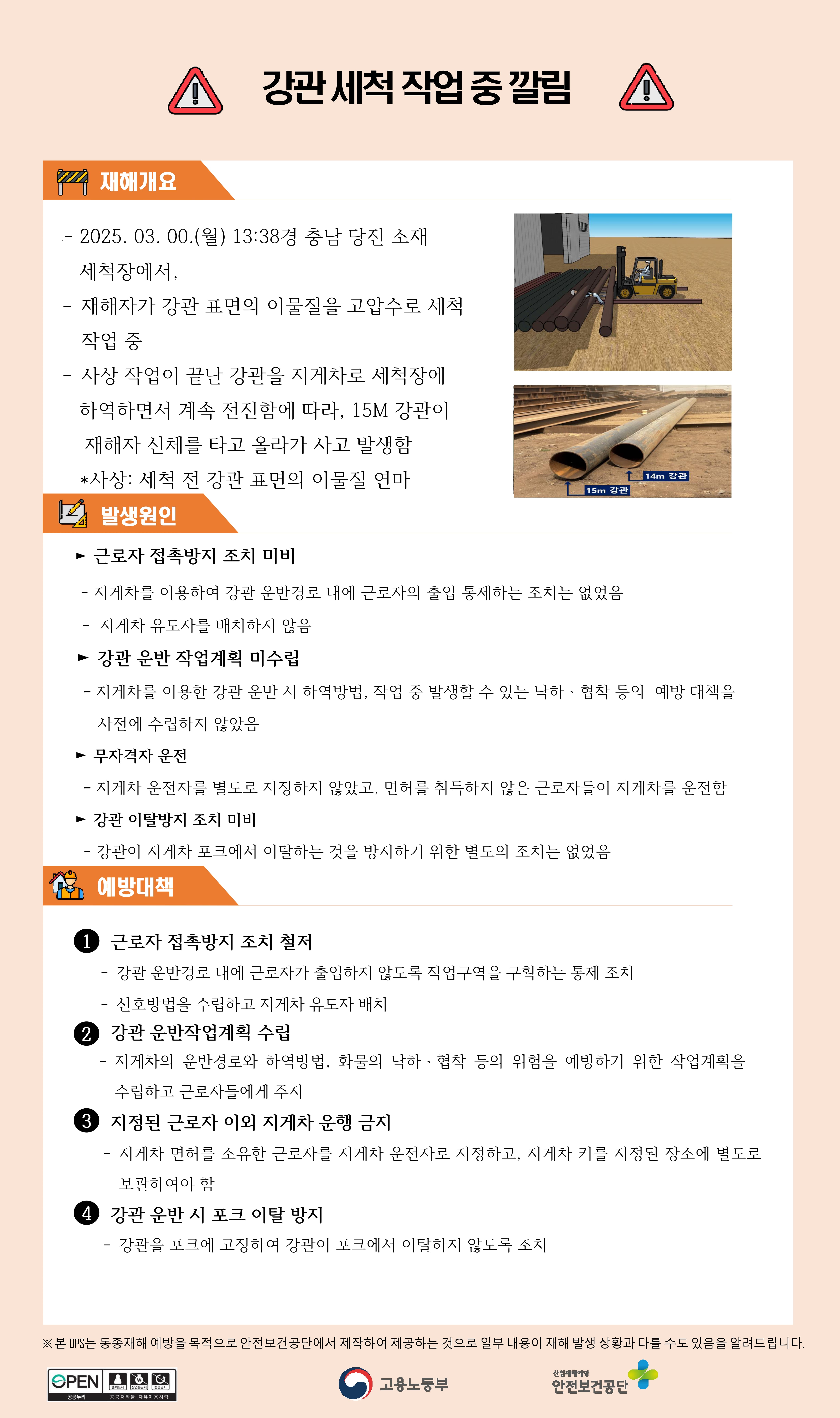제조업 재해사례 - 강관 세척 작업 중 깔림