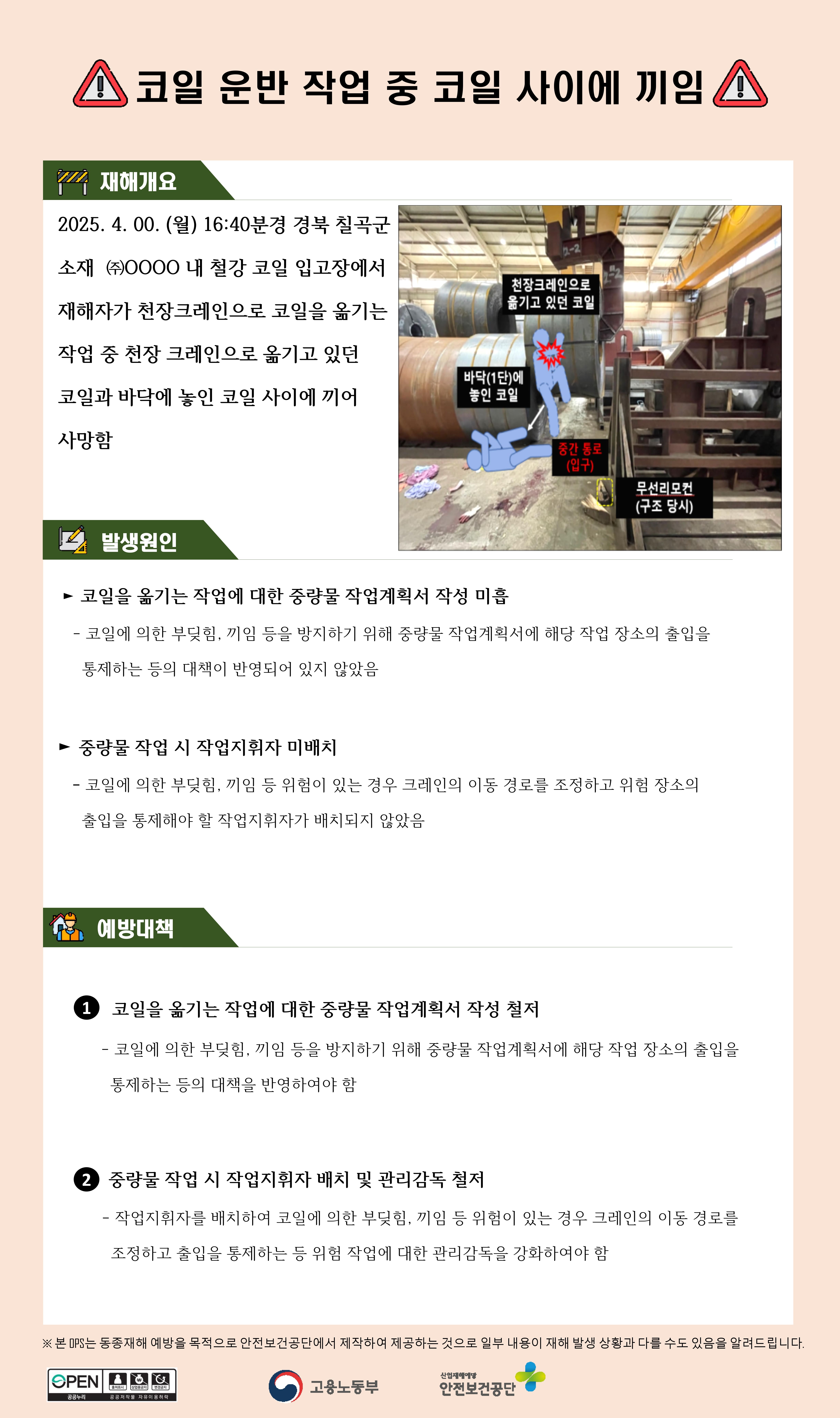 제조업 재해사례 - 코일 운반 작업 중 코일 사이에 끼임