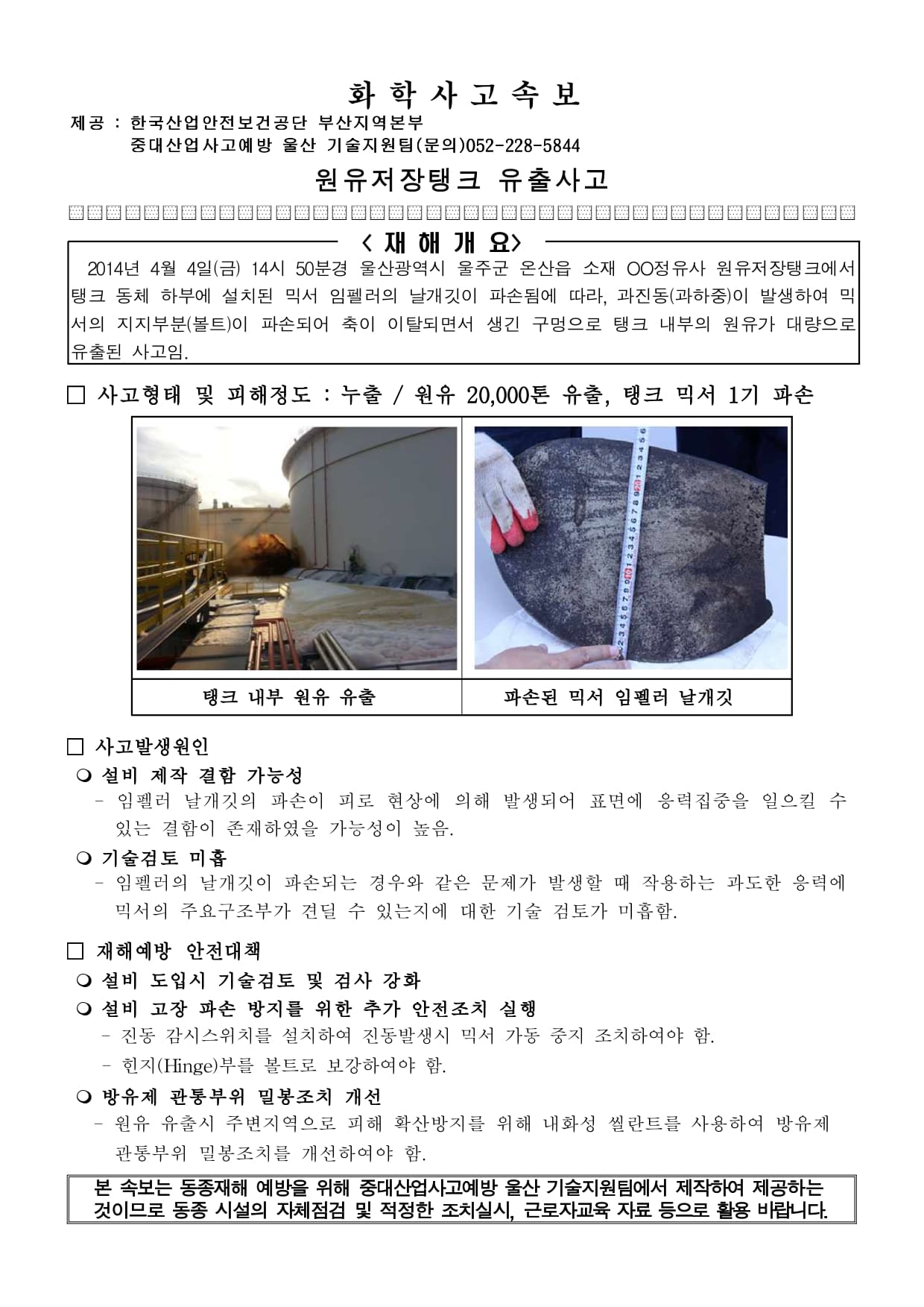 제조업 재해사례 - 원유저장탱크 유출사고