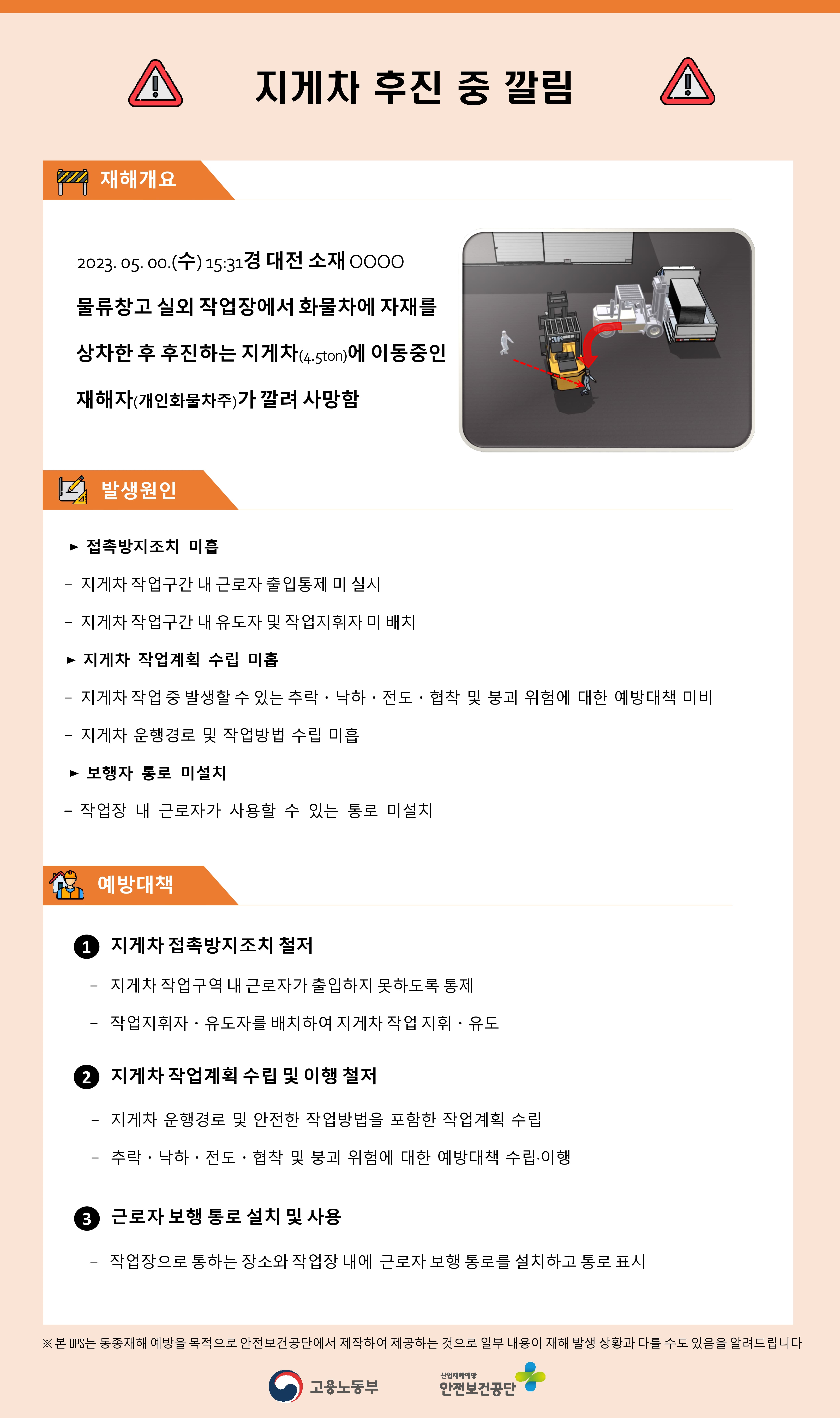 서비스업 재해사례 - 지게차 후진 중 깔림