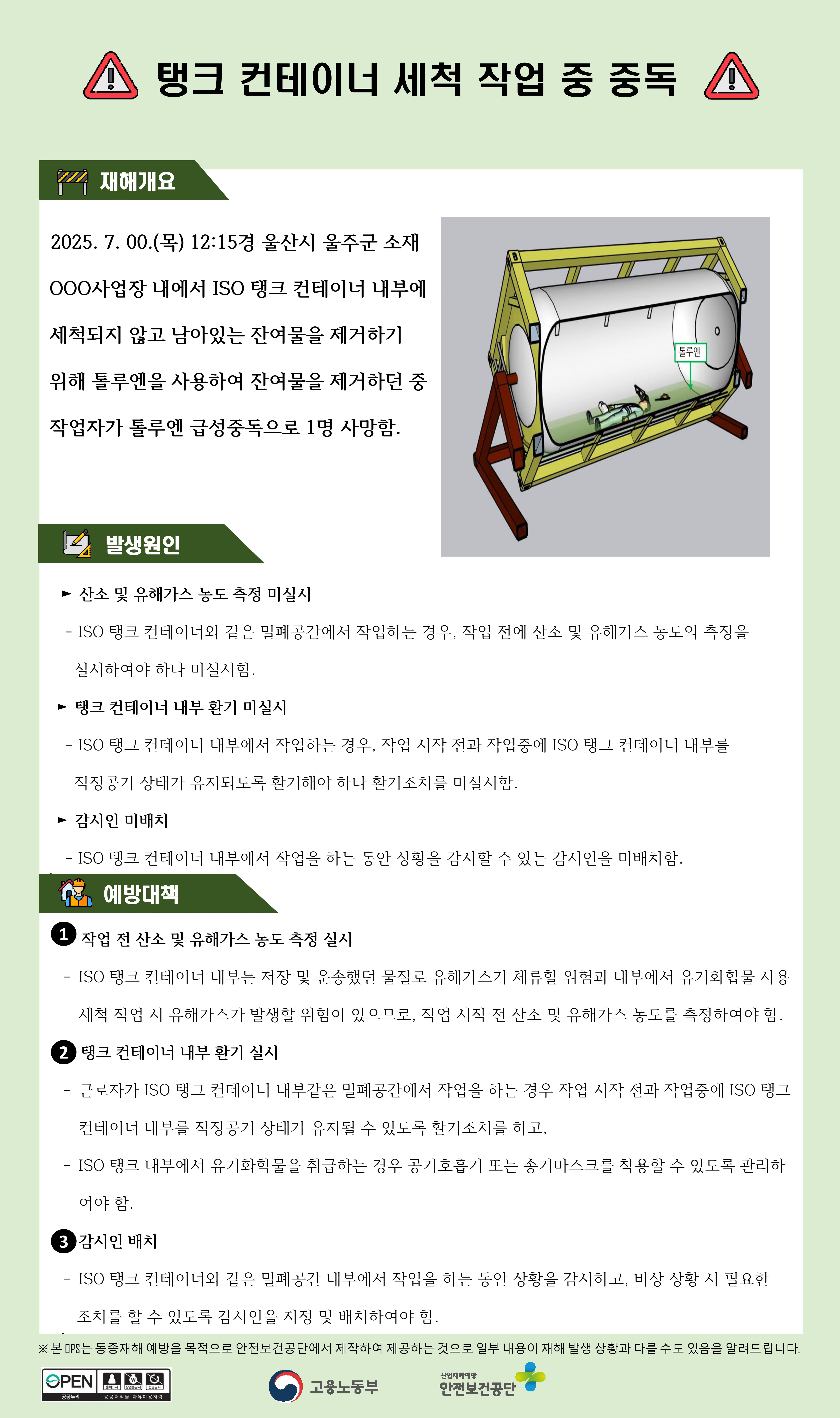 제조업 재해사례 - 탱크 컨테이너 세척 작업 중 중독