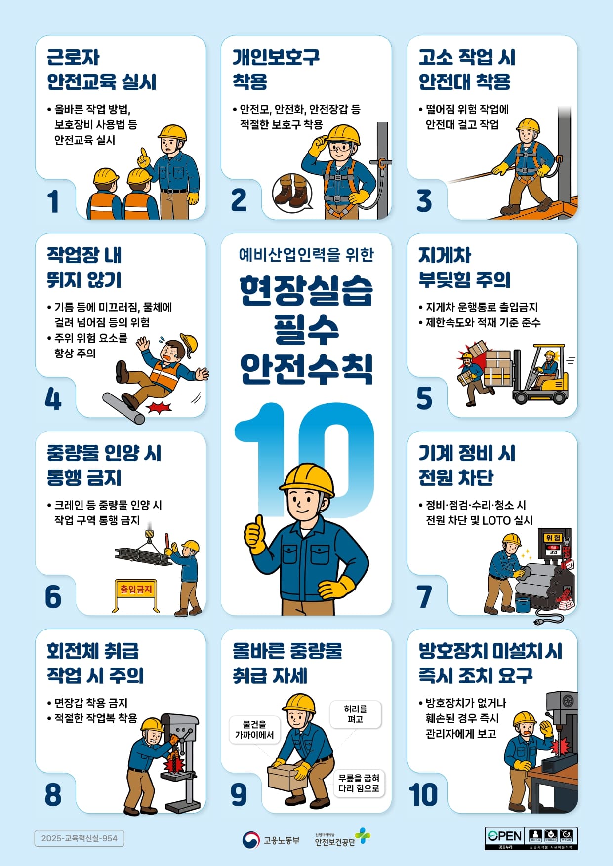 예비산업인력을 위한 현장실습 필수 안전수칙