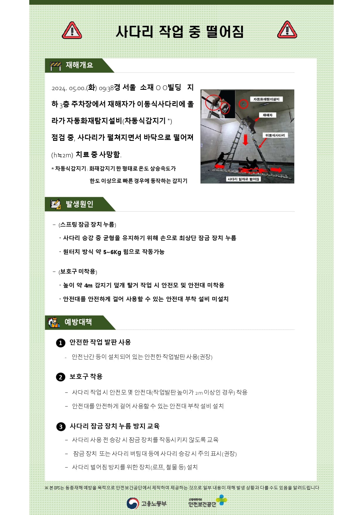 제조업 재해사례 - 사다리작업 중 떨어짐