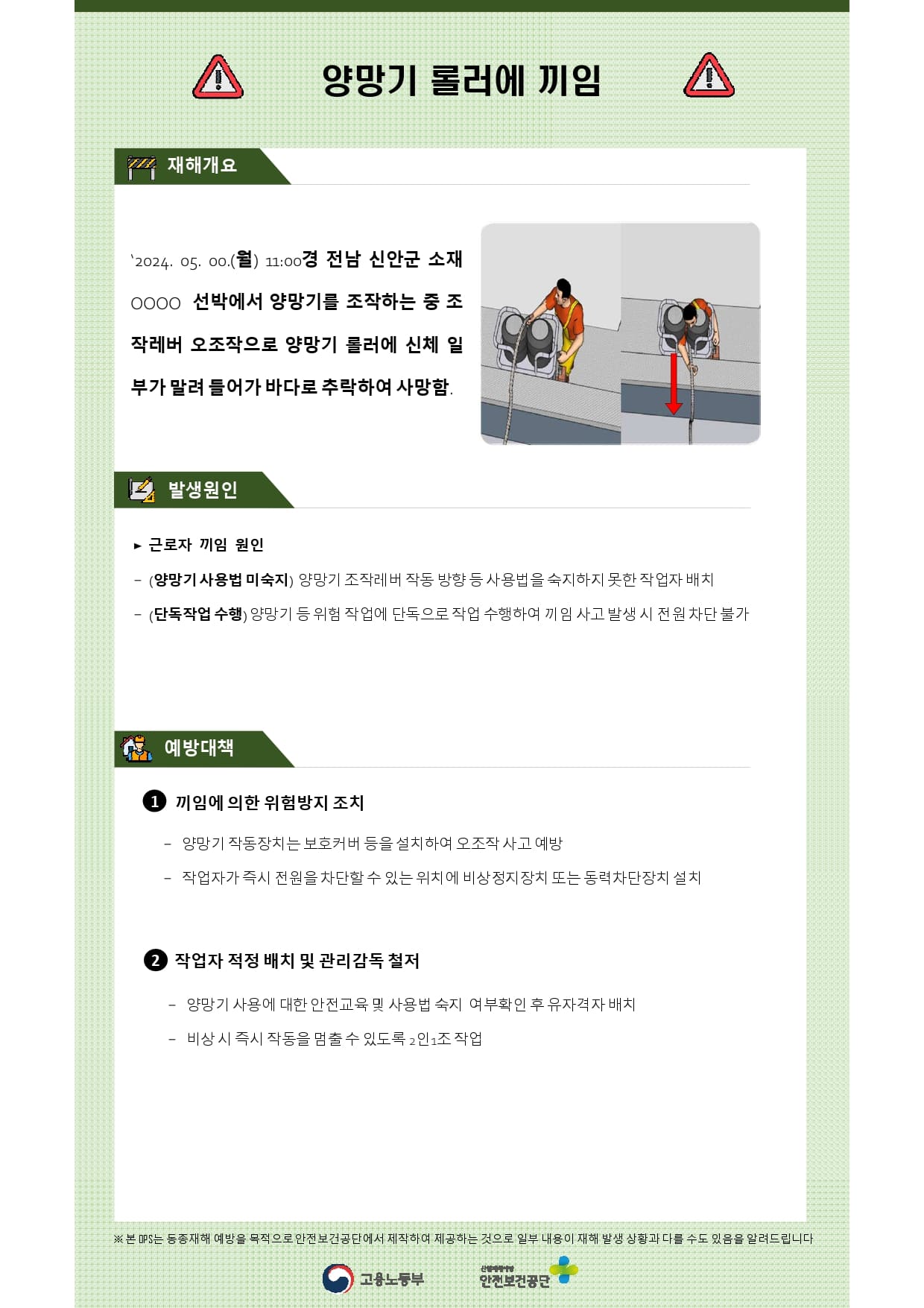 제조업 재해사례 - 양망기조작작업중끼임