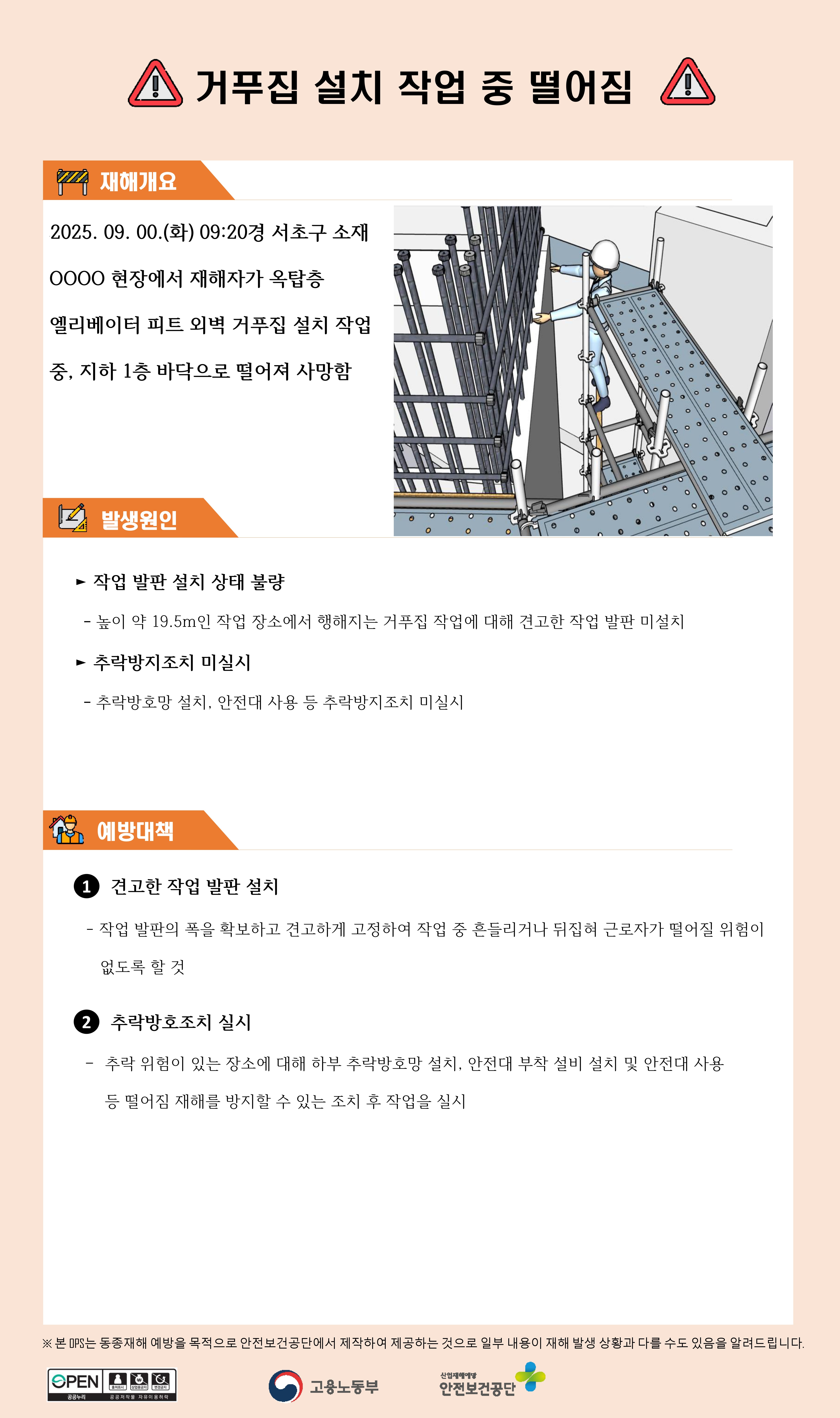 건설업 재해사례 - 거푸집 설치 작업 중 떨어짐