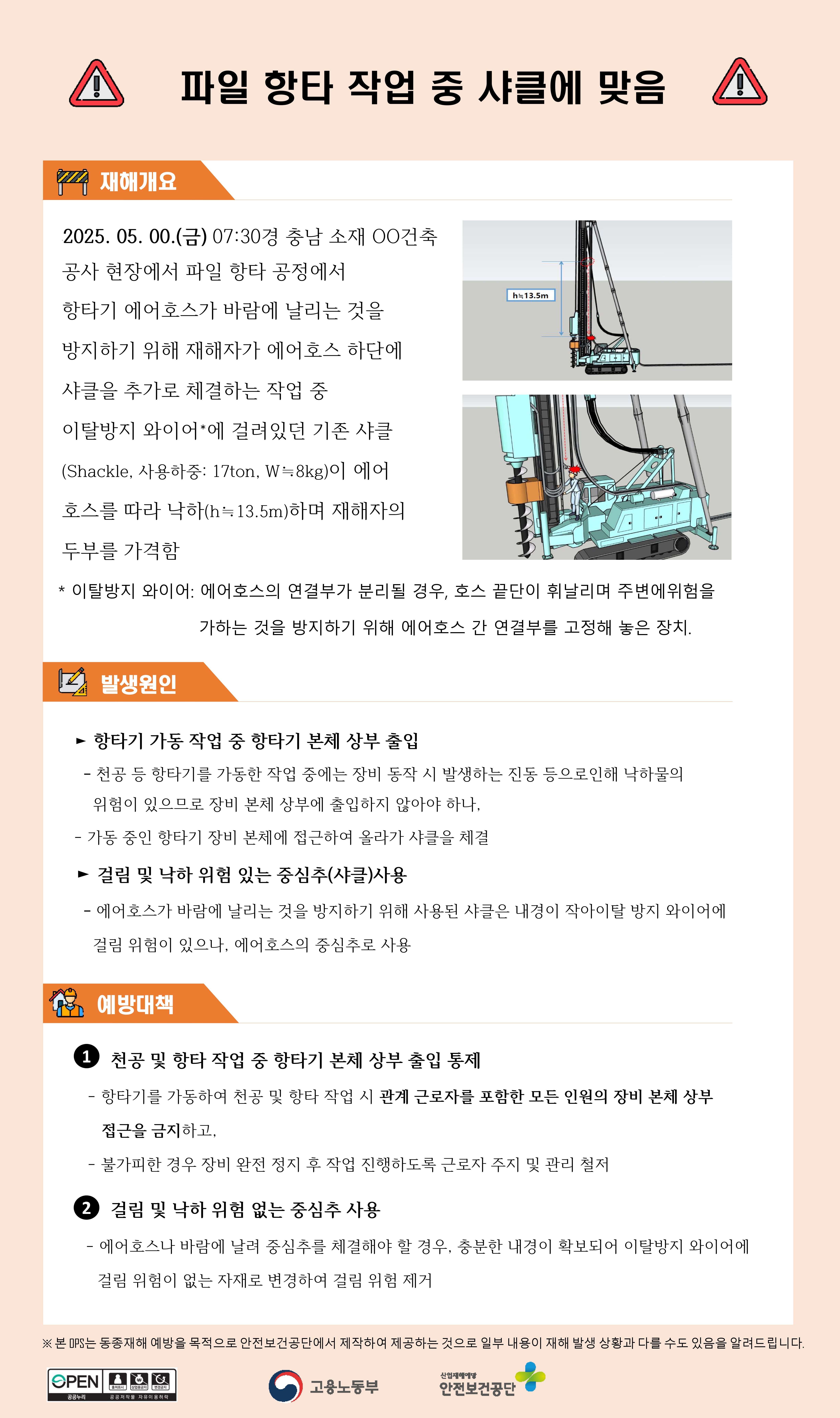 건설업 재해사례 - 파일 항타 작업 중 샤클에 맞음