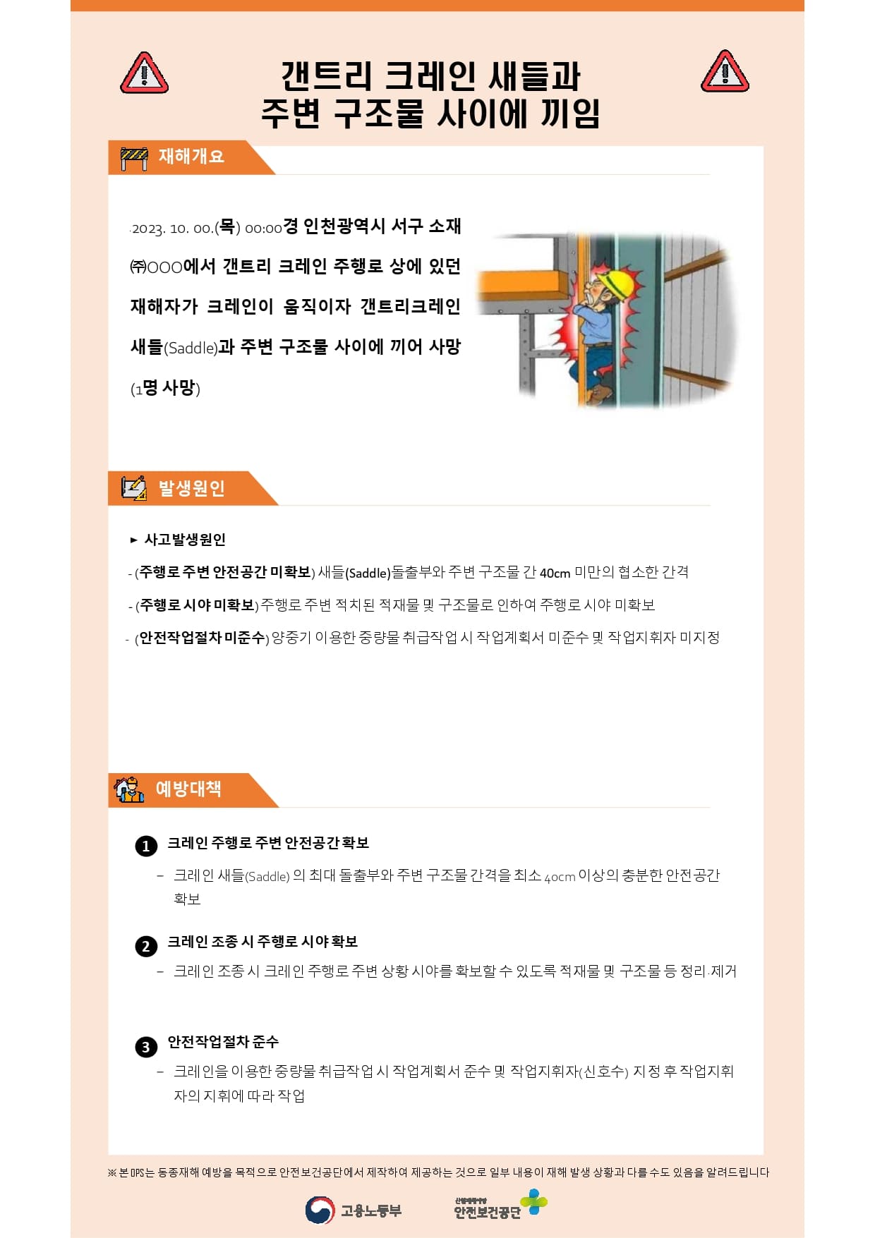 제조업 재해사례 - 크레인 새들과 구조물 사이에 끼임