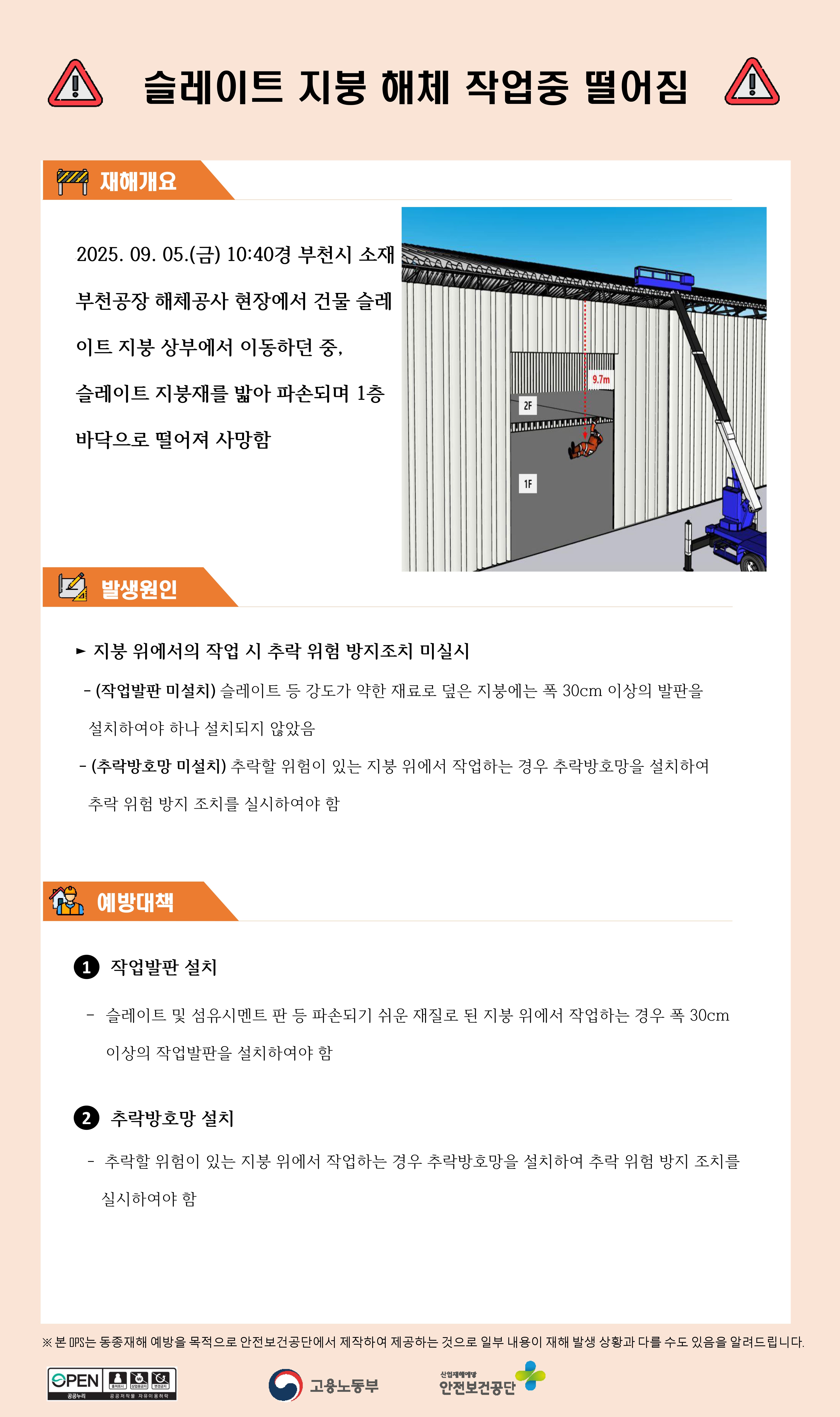 건설업 재해사례 - 슬레이트 지붕 해체 작업 중 떨어짐